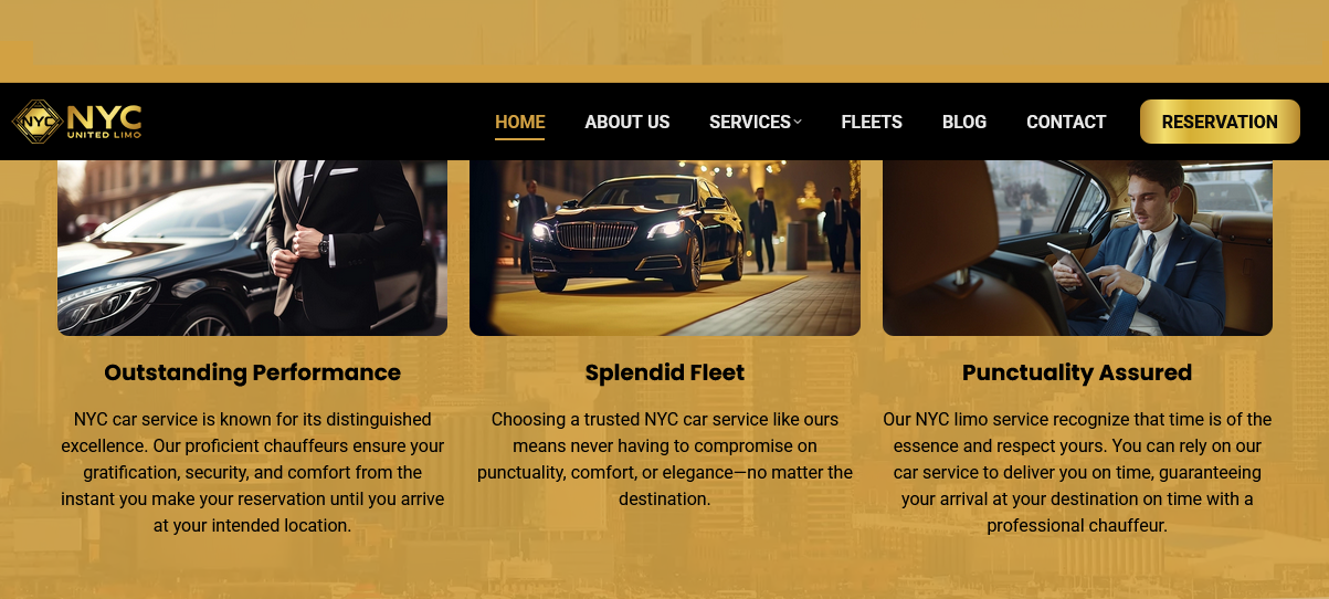 Jede Seite ist für Suchmaschinen optimiert: strukturierte Daten, schnelle Ladezeit, lokale Keywords (z. B. „Limo Service NYC“, „Airport Transfer JFK“) eingebaut. Zusätzlich wurde ein Blog-Template vorbereitet, um organischen Traffic langfristig zu erhöhen.